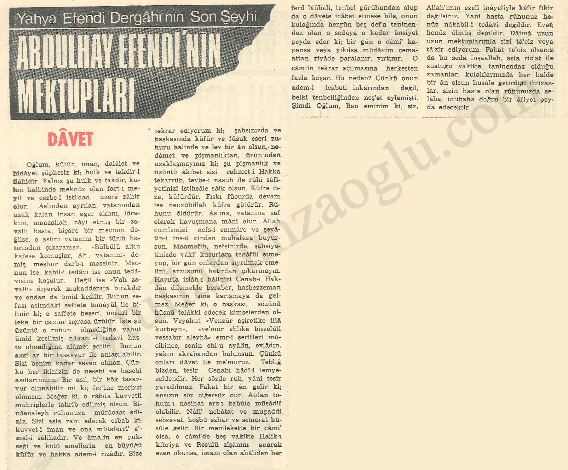 5 - Davet - Abdülhay Efendi'nin Mektupları