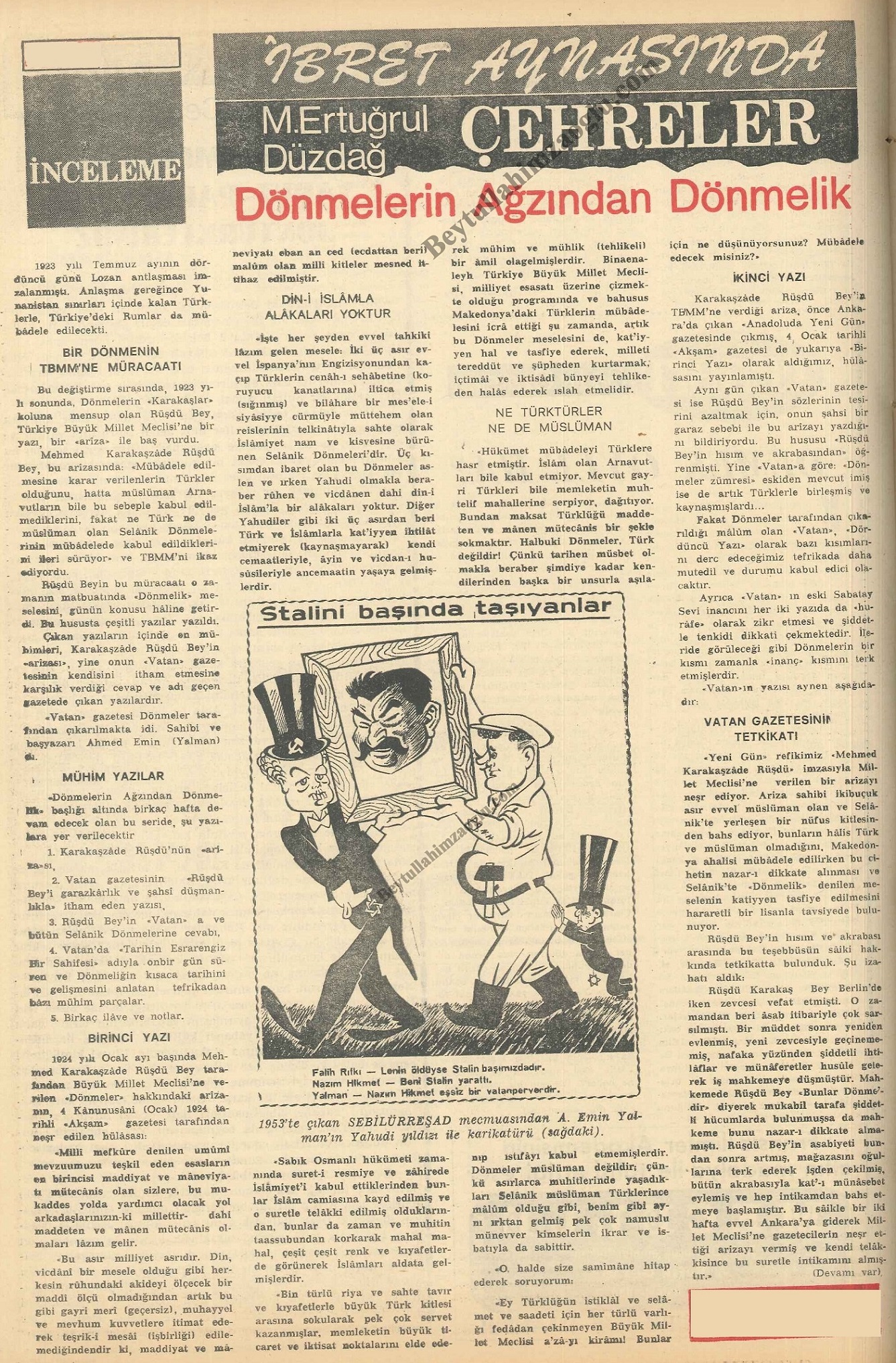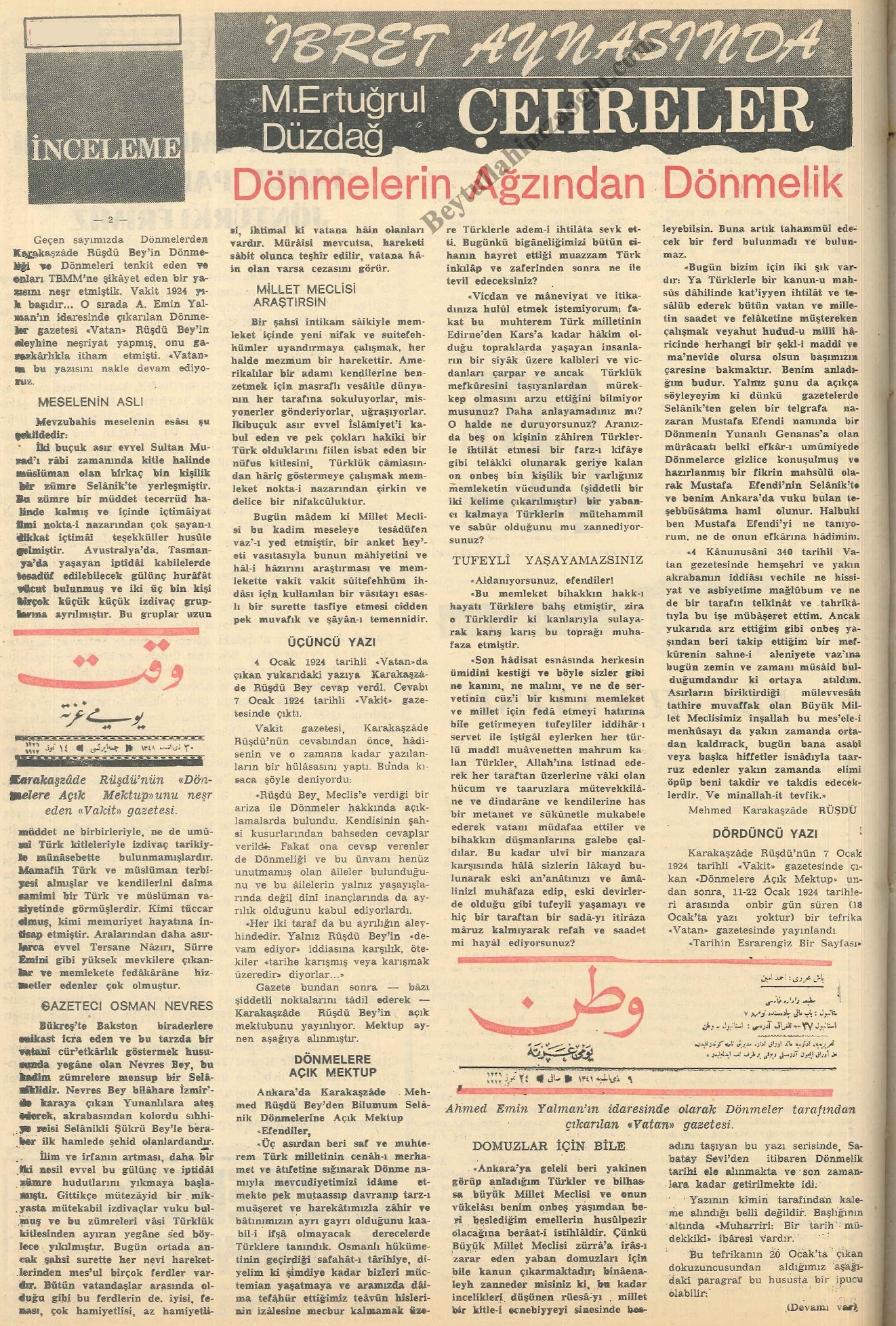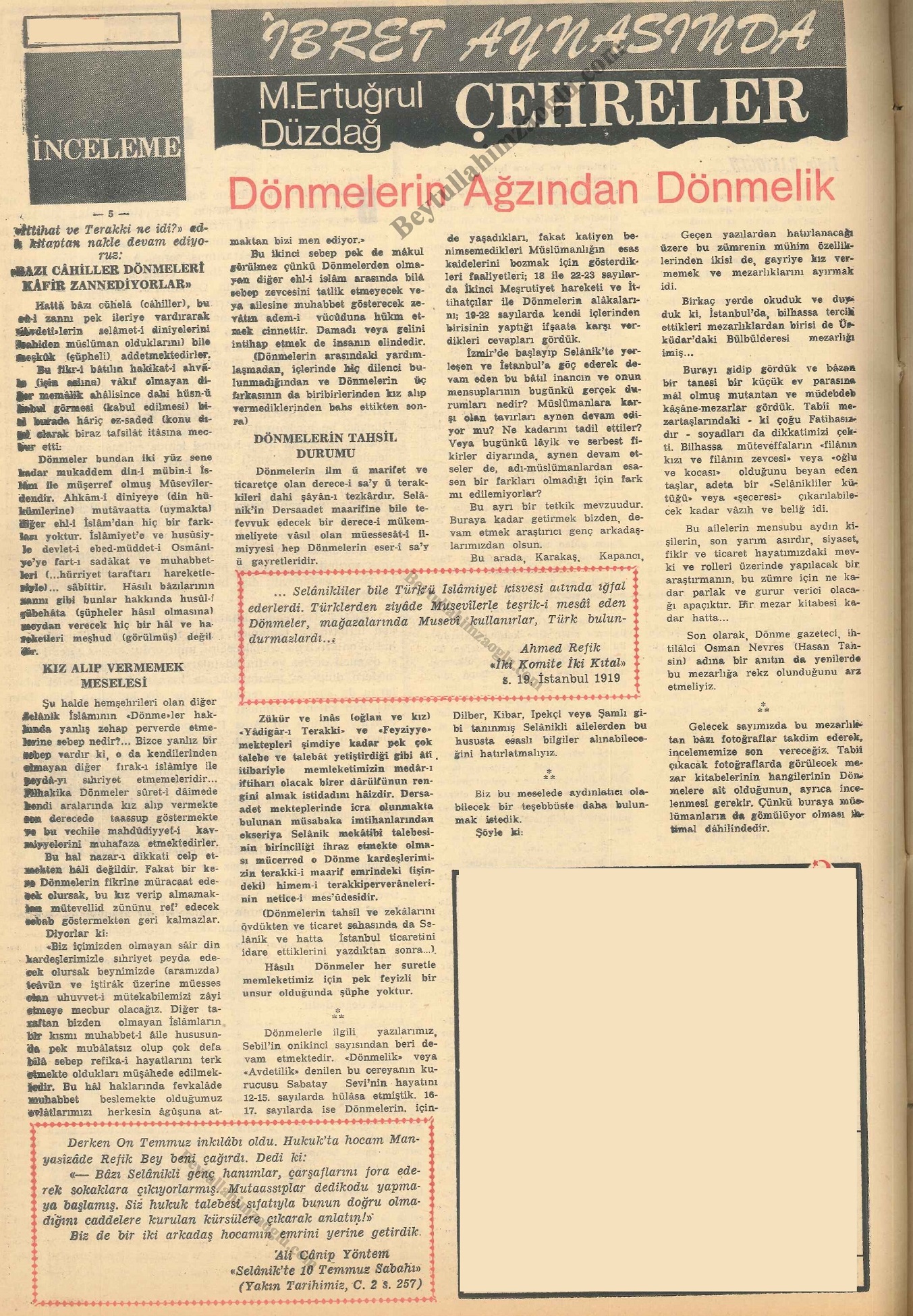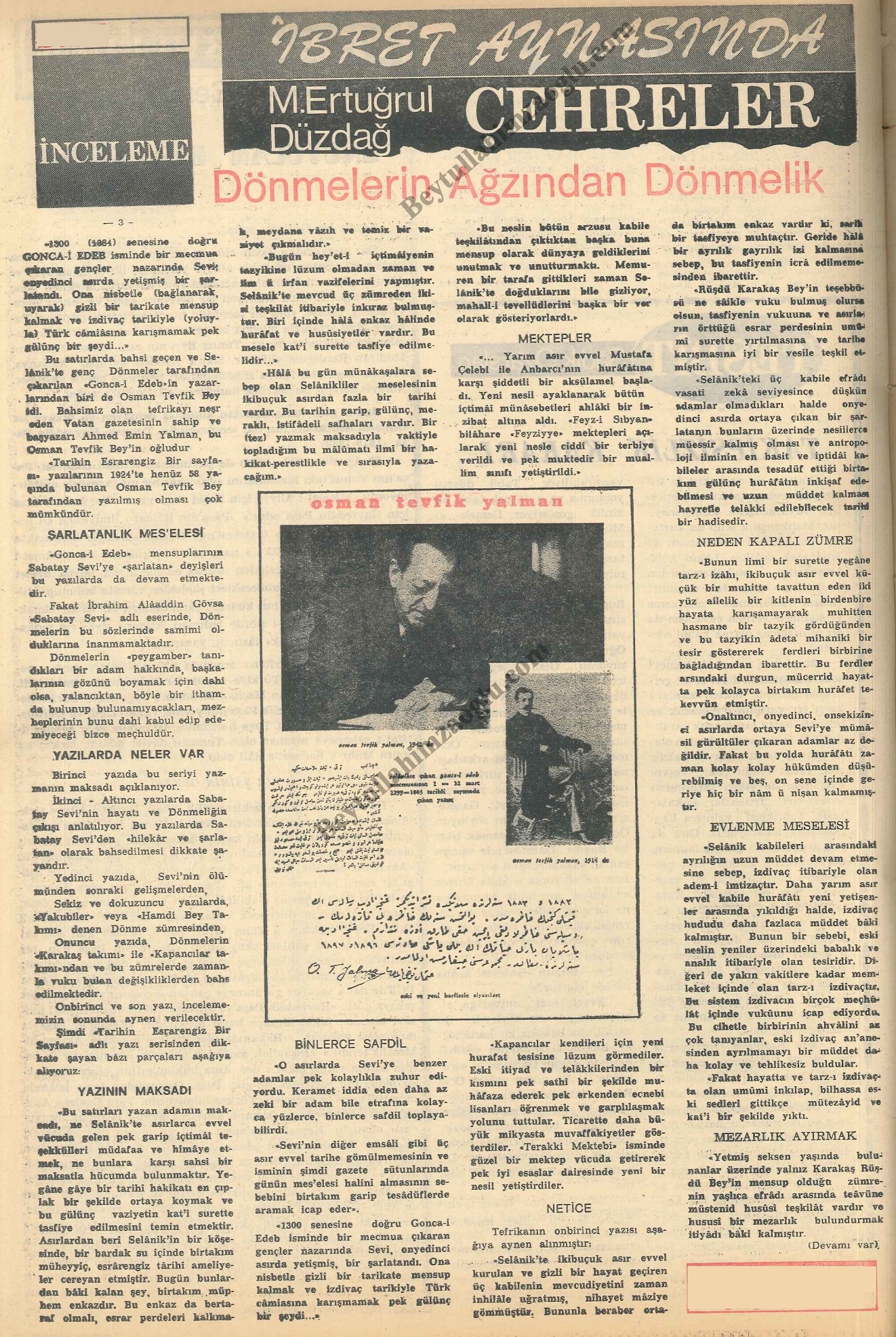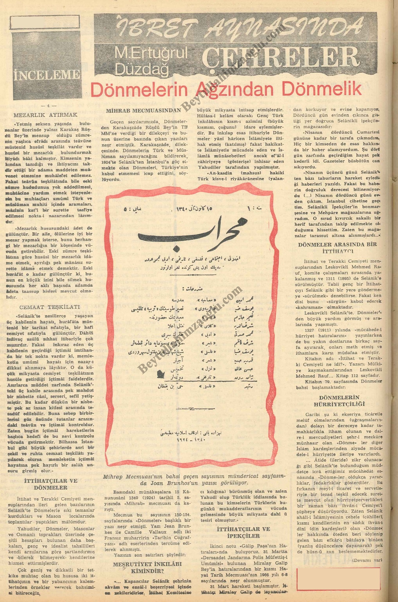 M. Ertuğrul Düzdağ'ın "İbret Aynasında Çehreler" serlevhası altında "Dönmelerin Ağzından Dönmelik" başlığıyla kaleme aldığı 5 makalesini bir arada buradan okuyabilirsiniz.