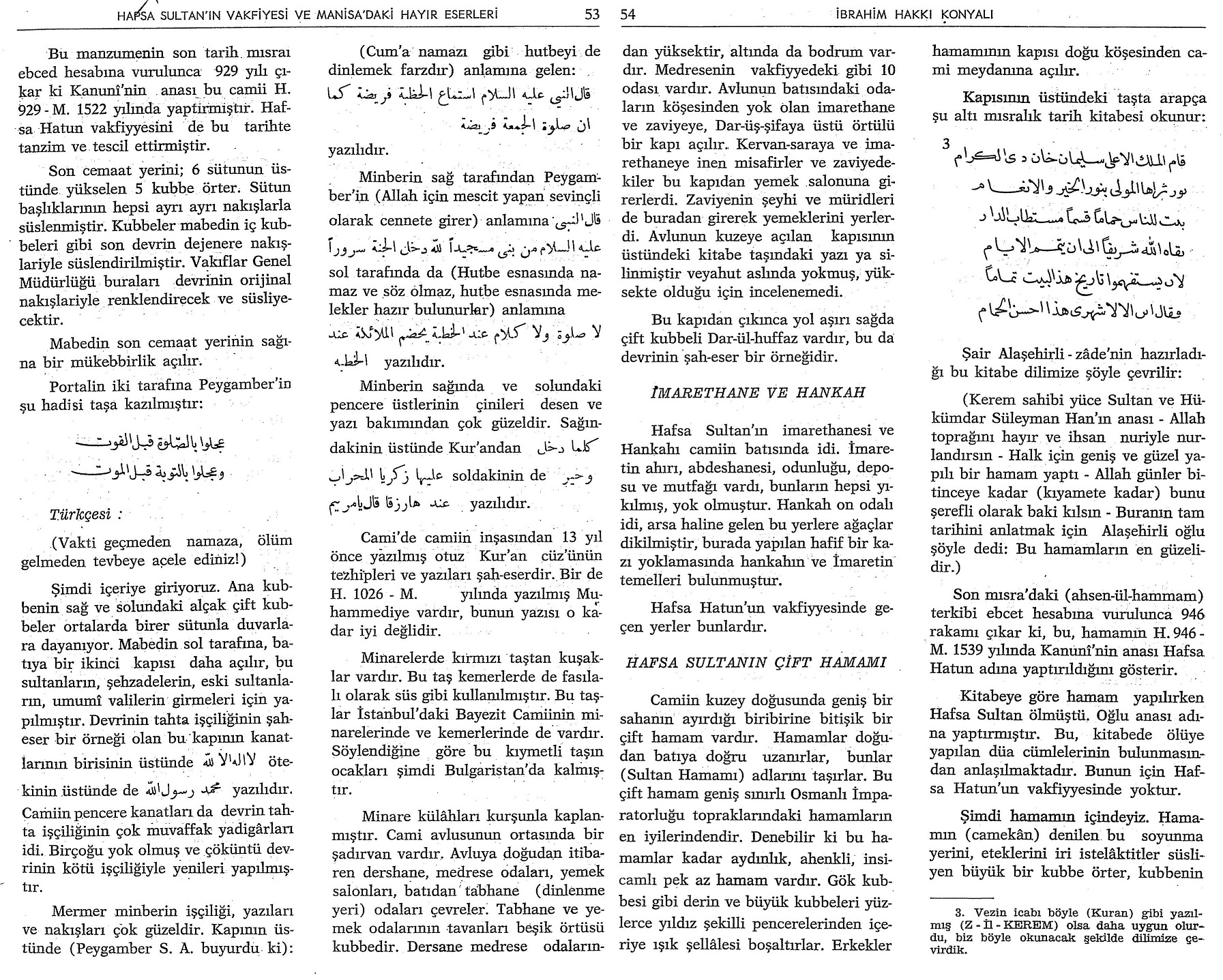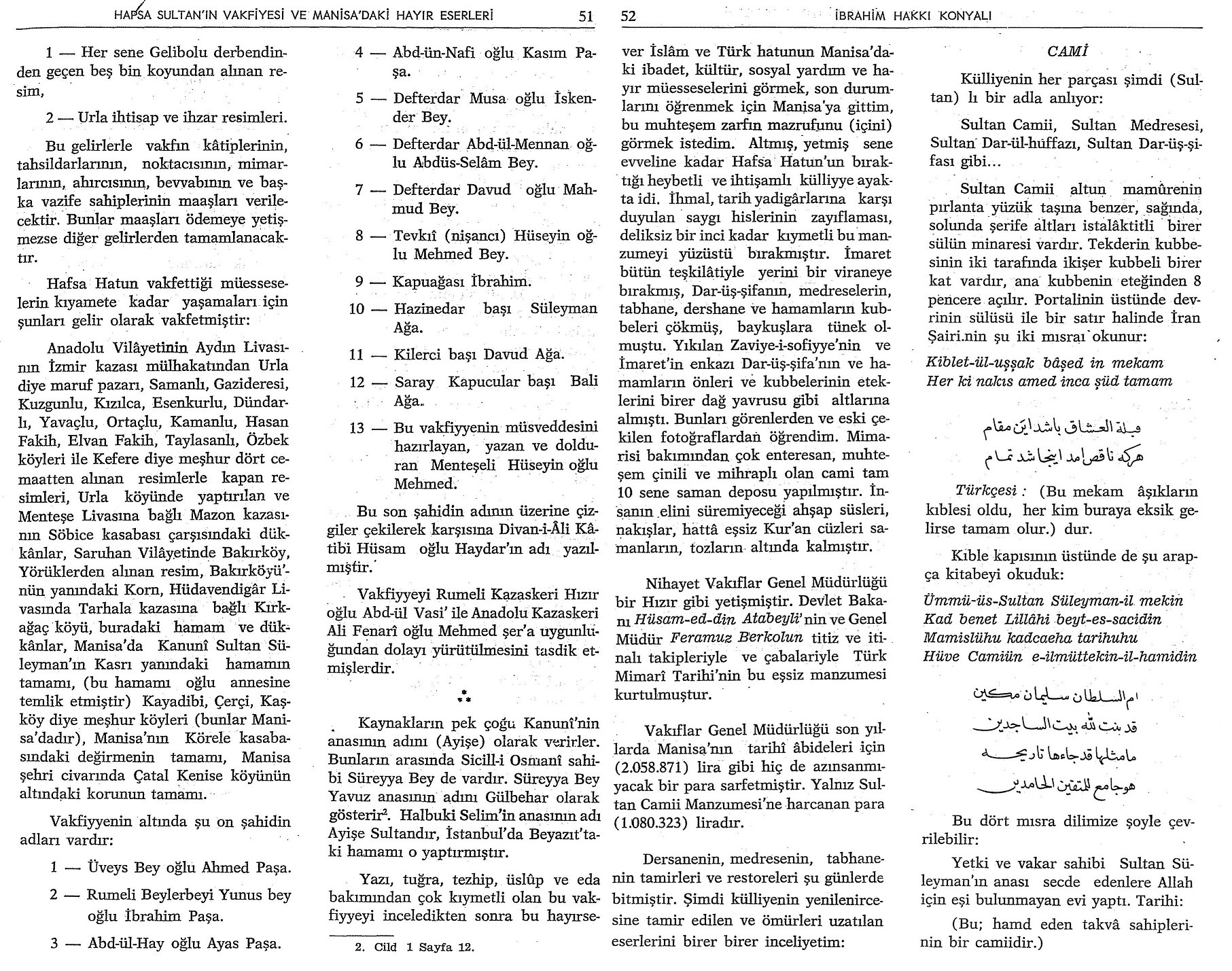 Hafsa Sultan'ın Vakfiyesi ve Manisa'daki Hayır Eserleri -İbrahim Hakkı Konyalı