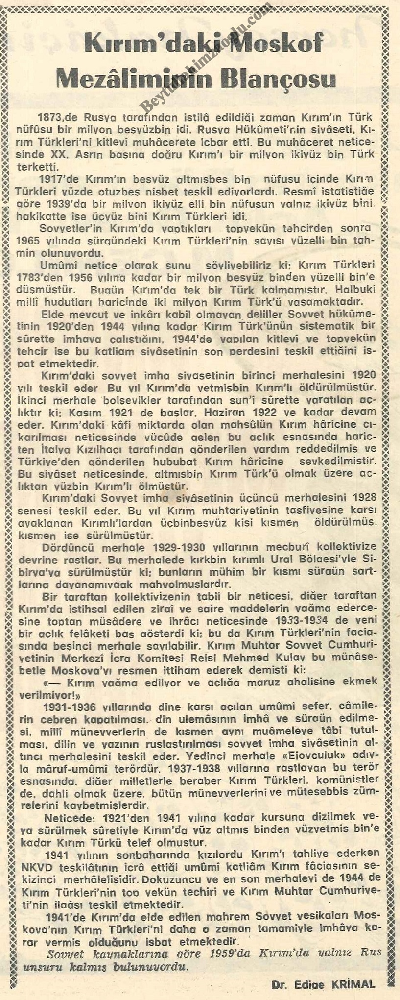 Kırım'daki Moskof Mezaliminin Bilançosu - Dr. Mustafa Edige Kırımal