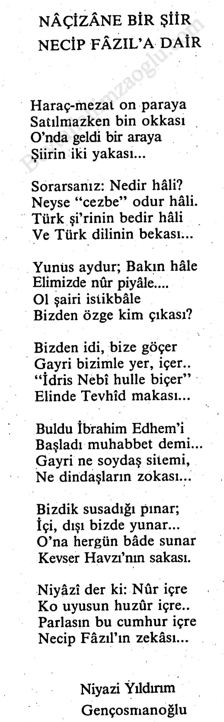 Necip Fazıl Kısakürek'e Bir Şiir - Niyazi Yıldırım Gençosmanoğlu